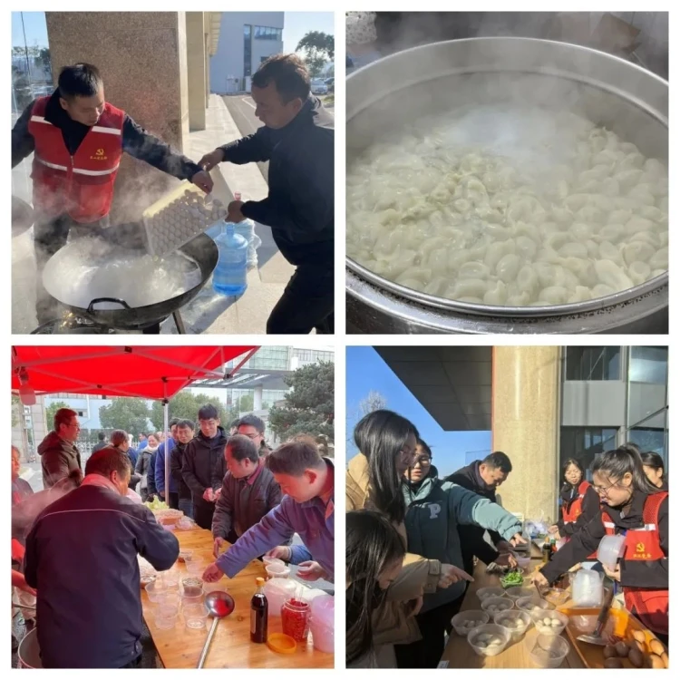 “冬至不端饺子碗,冻掉耳朵没人管。”在双环本部和江苏双环,又是一番别样的热闹景象。“开煮!”一声令下,一个个白白胖胖的饺子纷纷入锅,不一会儿就香飘四溢,伴随着热气腾腾的饺子出锅,整个园区沉浸在饺香四溢的节日氛围中。大家围坐在一起,吃饺子、唠家常,现场氛围十分和谐。为了照顾异乡人的口味,双环本部还为大家贴心地准备了美味的咸甜汤圆、茶叶蛋、五花肉炖粉。