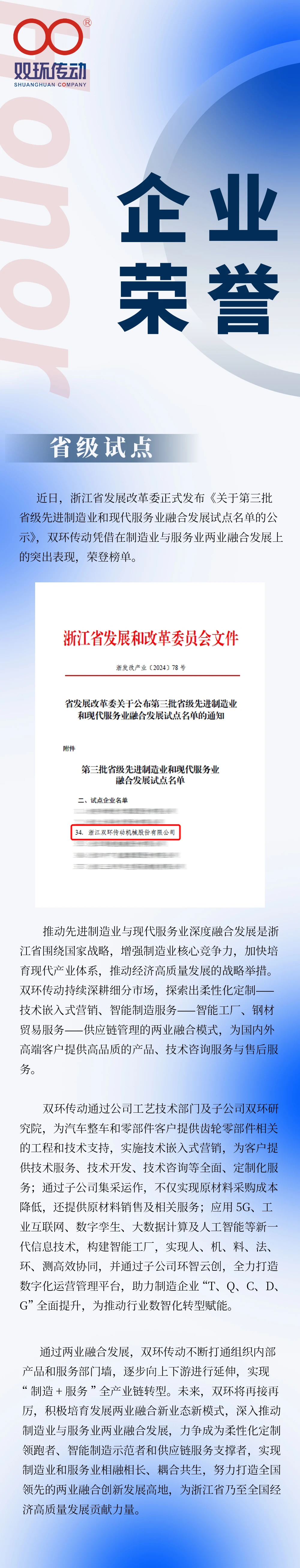 喜讯!双环传动获评省级先进制造业和现代服务业融合发展试点企业