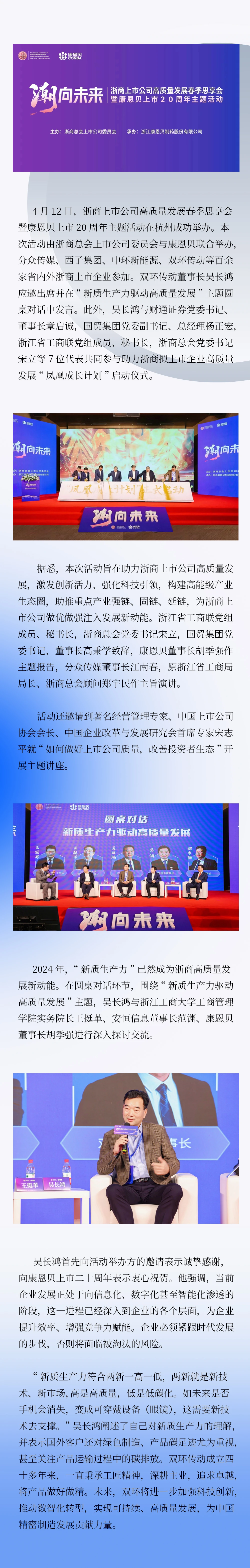 双环传动董事长吴长鸿出席浙商上市公司高质量发展春季思享会暨康恩贝上市20周年主题活动