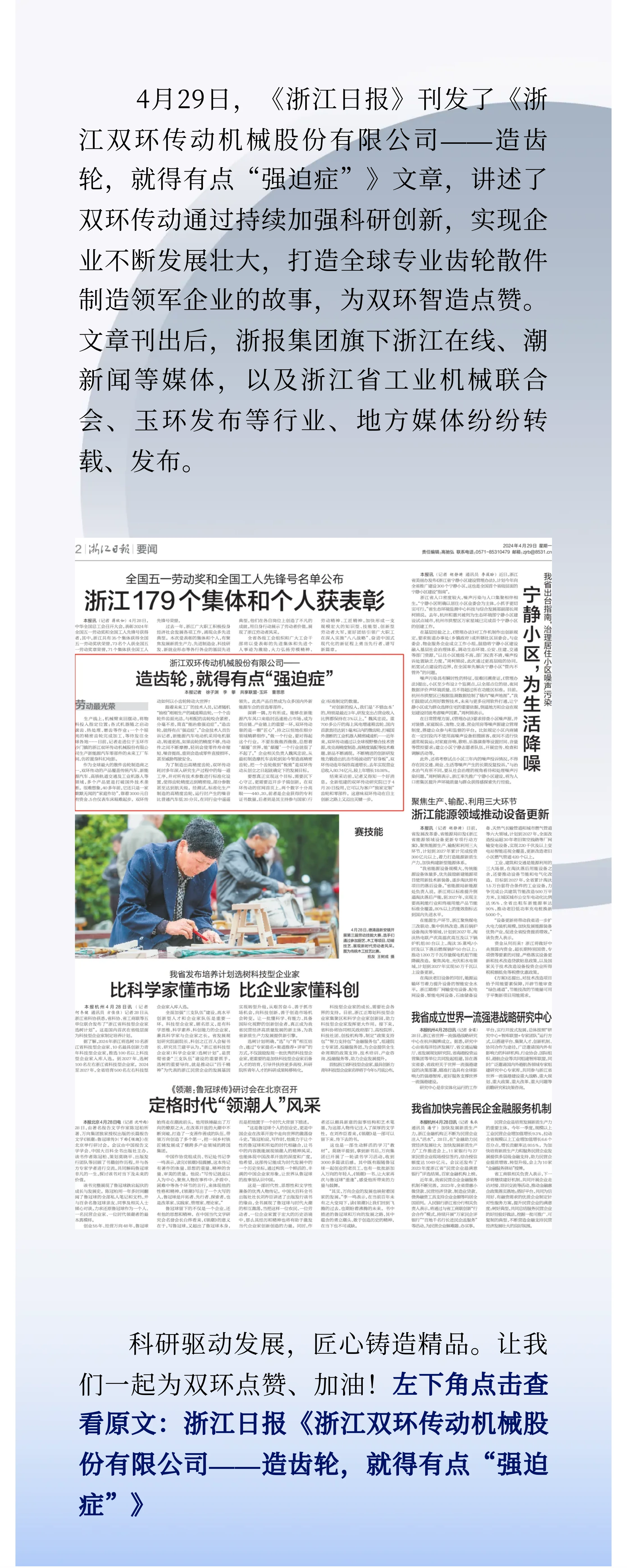 喜报!双环传动荣获“浙江省模范集体”荣誉称号!