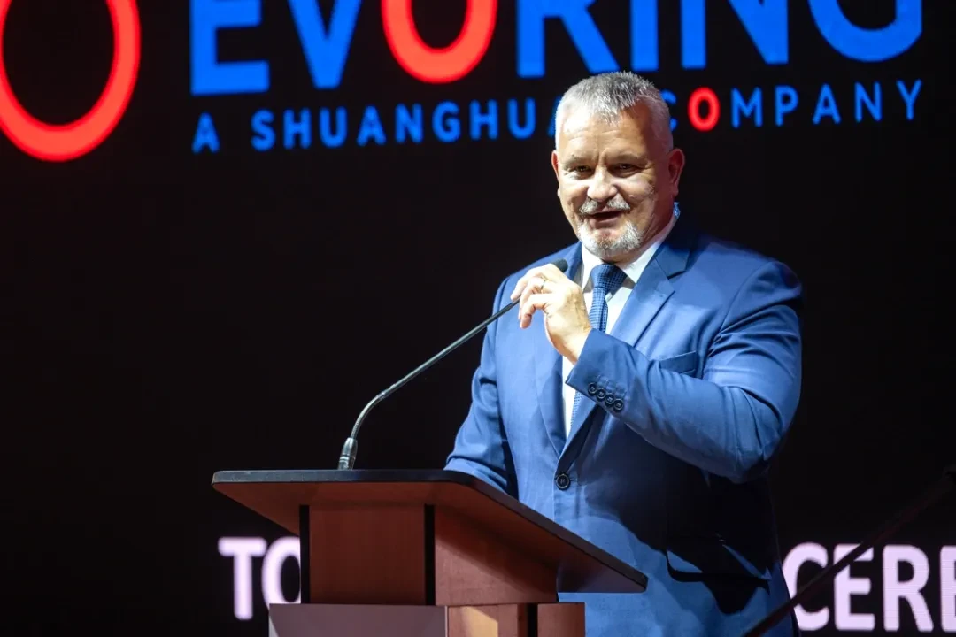 在致辞中,吴长鸿代表双环传动向匈牙利政府领导、各位嘉宾的到来表示热烈欢迎与诚挚感谢。他表示,转眼间,我们就能见证工厂建设的完成,双环匈牙利工厂建设如此高效地推进,离不开大家的大力支持与共同努力。在此,非常感谢匈牙利中央政府、当地州、市为工厂的建设所给予的大力支持,感谢项目建设方Merkbau团队,项目管理方Greenfield团队,当地合作伙伴以及双环EVORING团队等给予的关心支持与付出的辛勤努力。期待项目团队再接再厉,同心协力,推动工厂早日建成投产,为更好地服务全球客户、稳步实现公司国际化发展、推动属地社会与经济发展做出贡献。