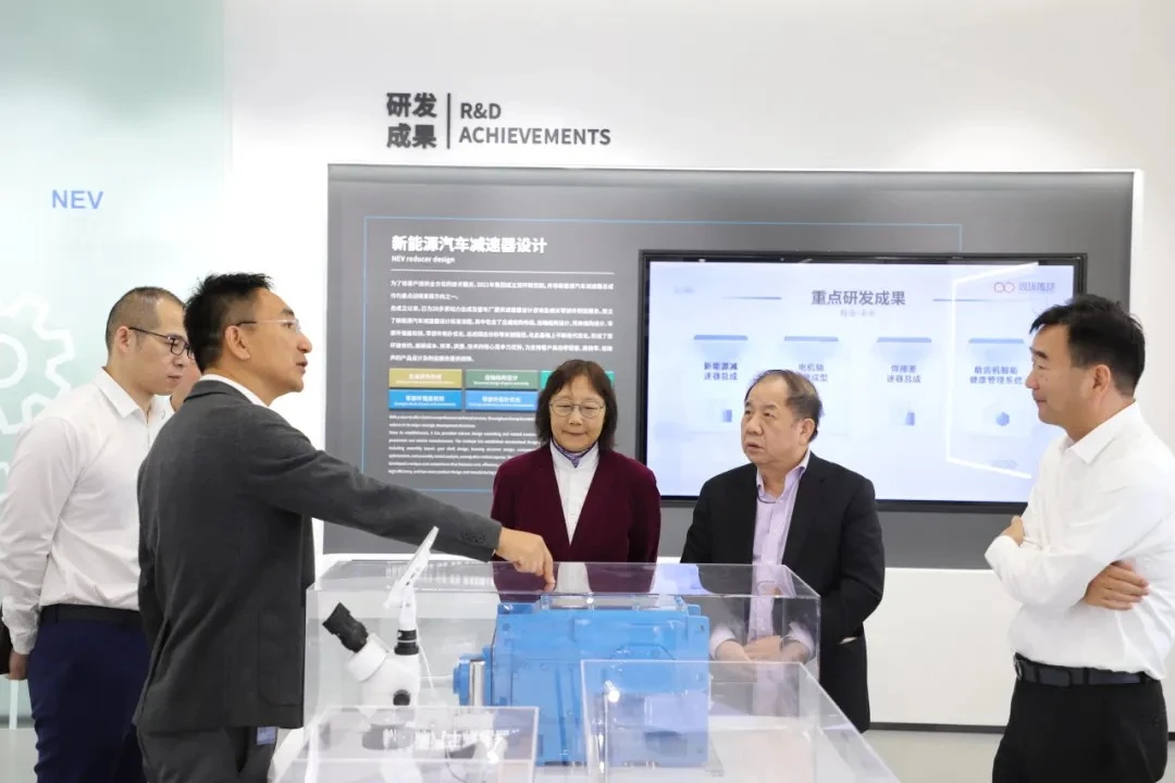 在双环研究院展厅,吴长鸿向林忠钦院士详细介绍了公司的发展历程、业务布局、技术创新成果、智能制造以及未来战略规划等。他表示,双环传动以“改变齿轮行业自给自足的格局,成为全球精密传动领导者”为企业愿景,一直坚持以技术为立身之本,在技术研发、产品创新、数字化转型上取得了积极成果,致力于为全球机械传动系统提供高速低噪、安全低碳的产品。林忠钦院士仔细察看着每一样展品,对双环传动在技术研发方面的投入和取得的成果表示肯定。在双环研究院实验室,林忠钦院士饶有兴趣地观看了各种先进的实验设备和测试过程,对双环传动在质量控制和技术创新方面的严谨态度表示赞赏。