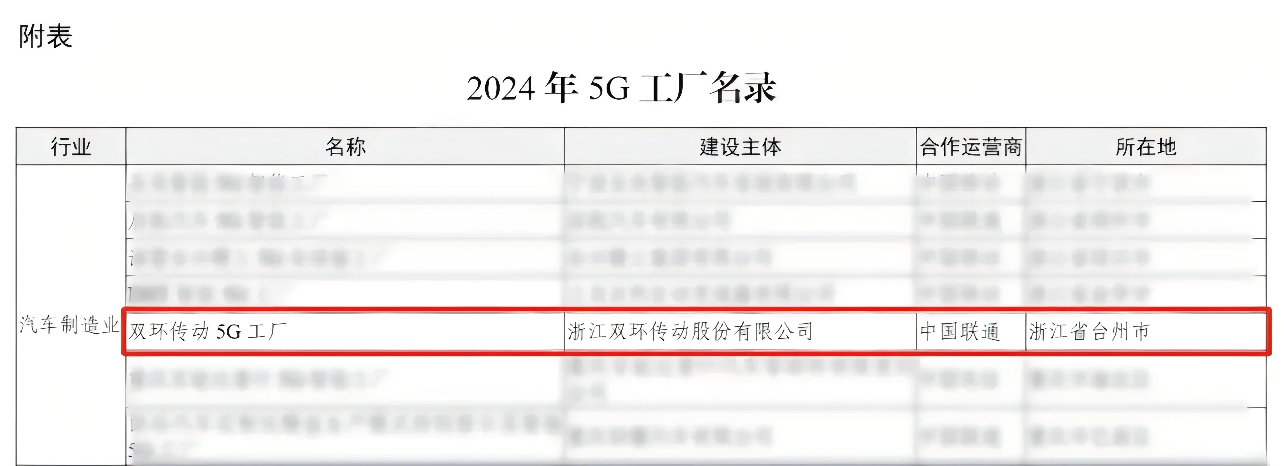 双环传动5G工厂入选工信部《2024年5G工厂名录》