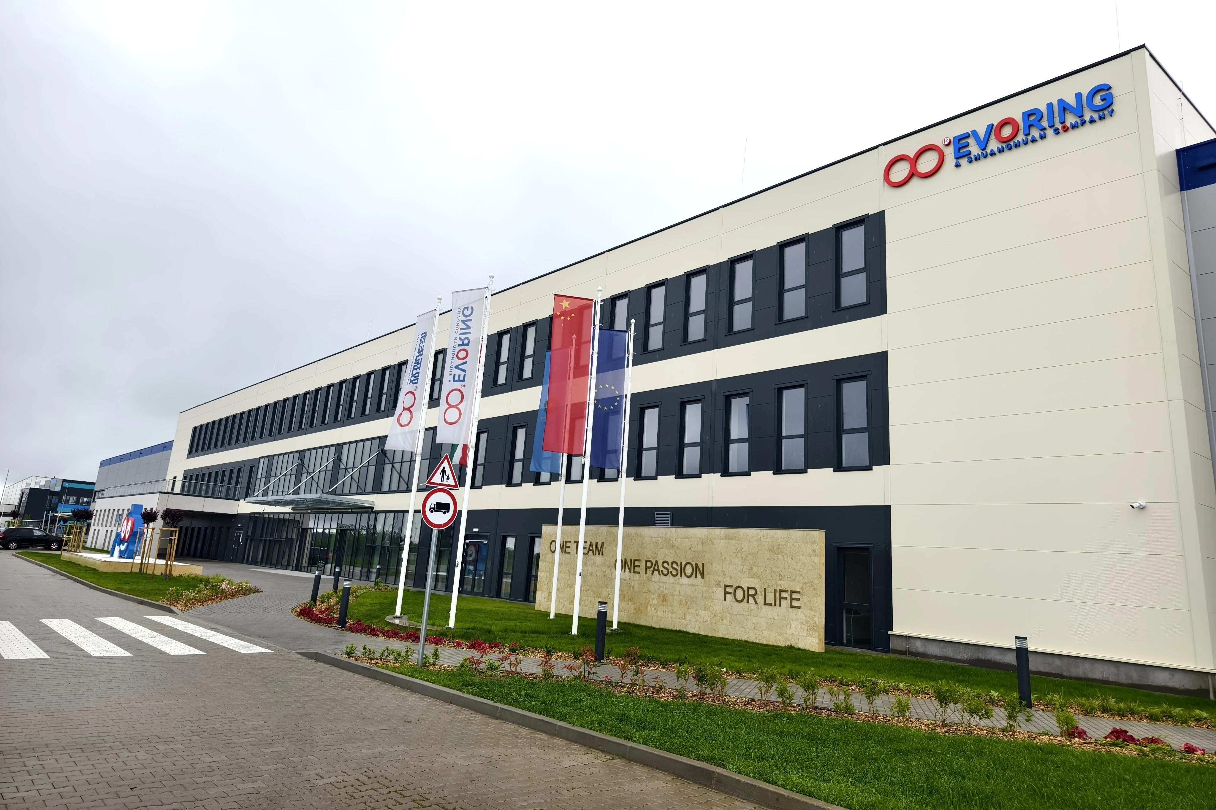双环传动匈牙利子公司(EVORING)投资官宣暨奠基仪式于2023年11月17日举行,2024年3月,匈牙利工厂正式启动建设。工厂位于匈牙利亚斯费尼绍鲁市,贴近首都布达佩斯,工厂生产规模为2.4万㎡,在各方的共同努力下,在短短6个月的时间实现封顶,并于2025年5月21日迎来交付,已正式可为广大客户提供服务。
