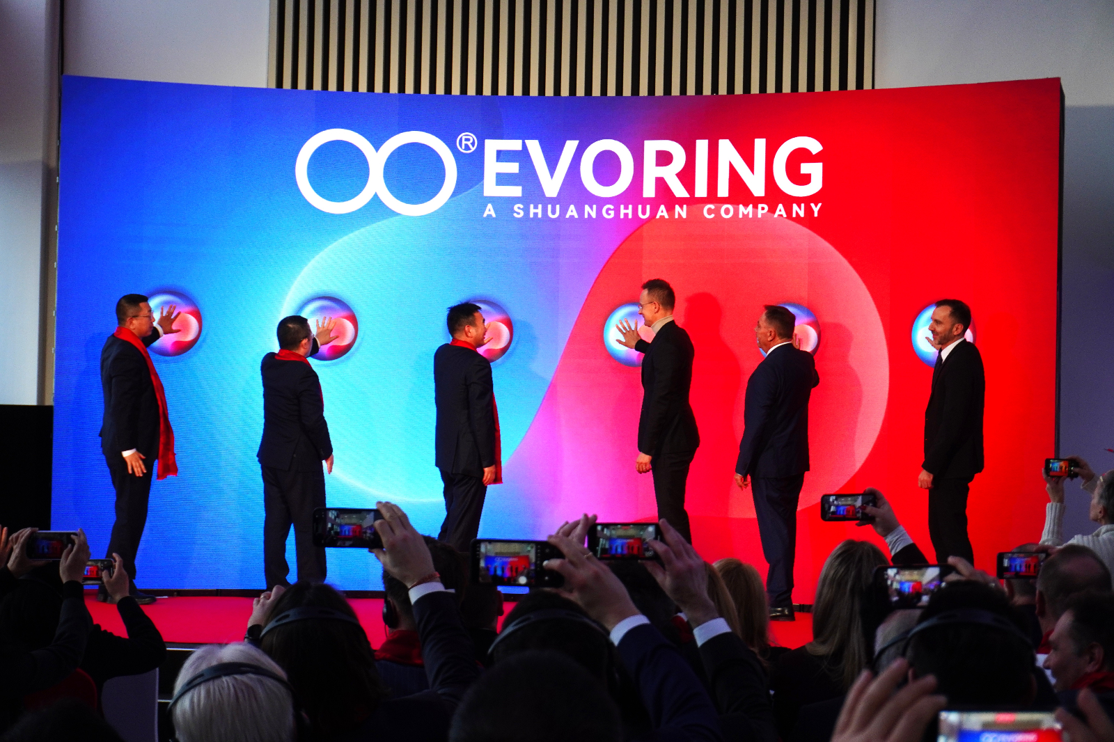 仪式现场,中国驻匈牙利大使馆、匈牙利政府、双环传动各位领导共同登台,按动开工仪式启动按钮。现场掌声雷动,在各位领导与嘉宾的见证与祝福下,EVORING新工厂正式投产运营,双环传动揭开新的发展篇章!